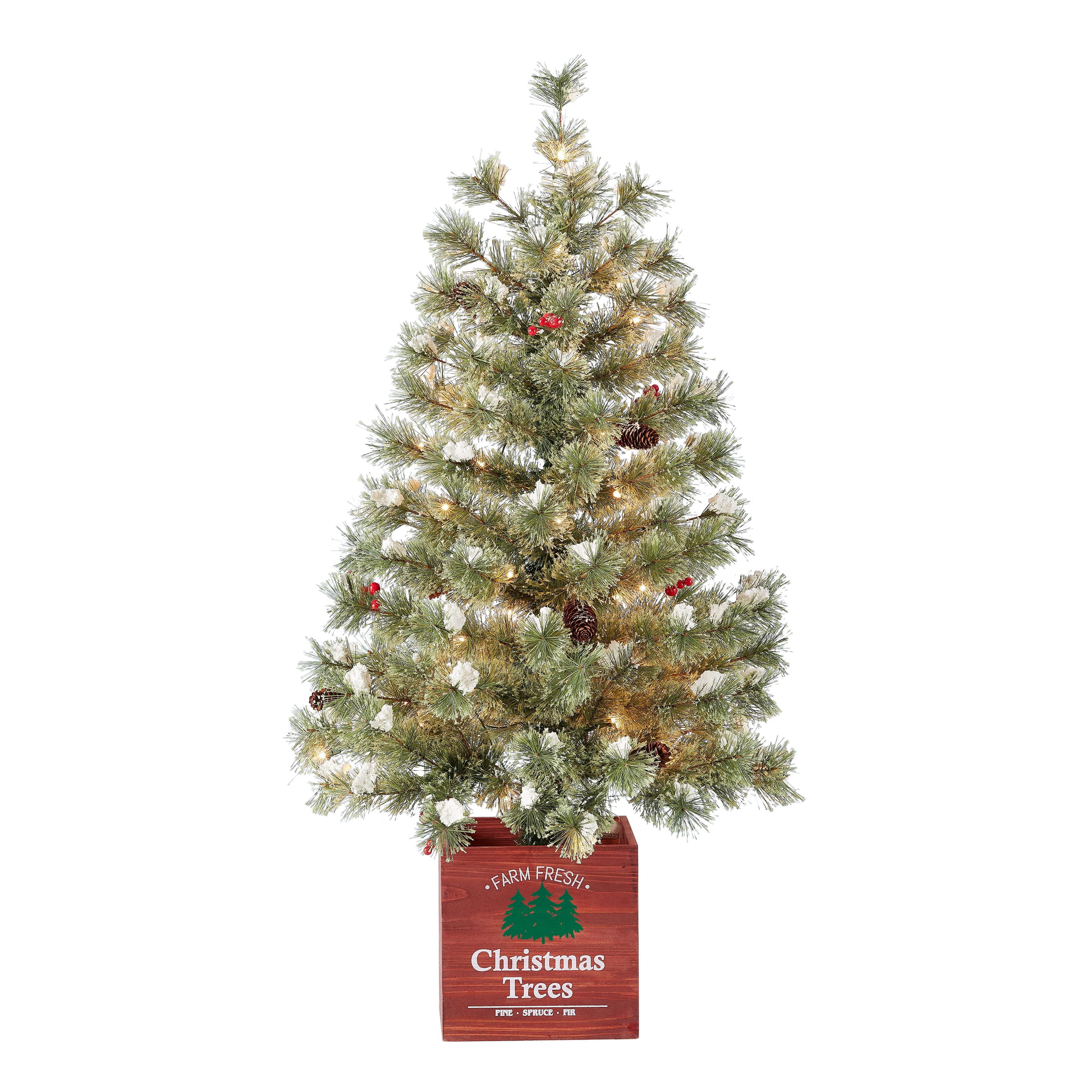 Holiday Time Pre Lit Incandescent Clear Porch In Wood Pot White Lights Christmas Tree 11 02 Green White Walmart Com Walmart Com